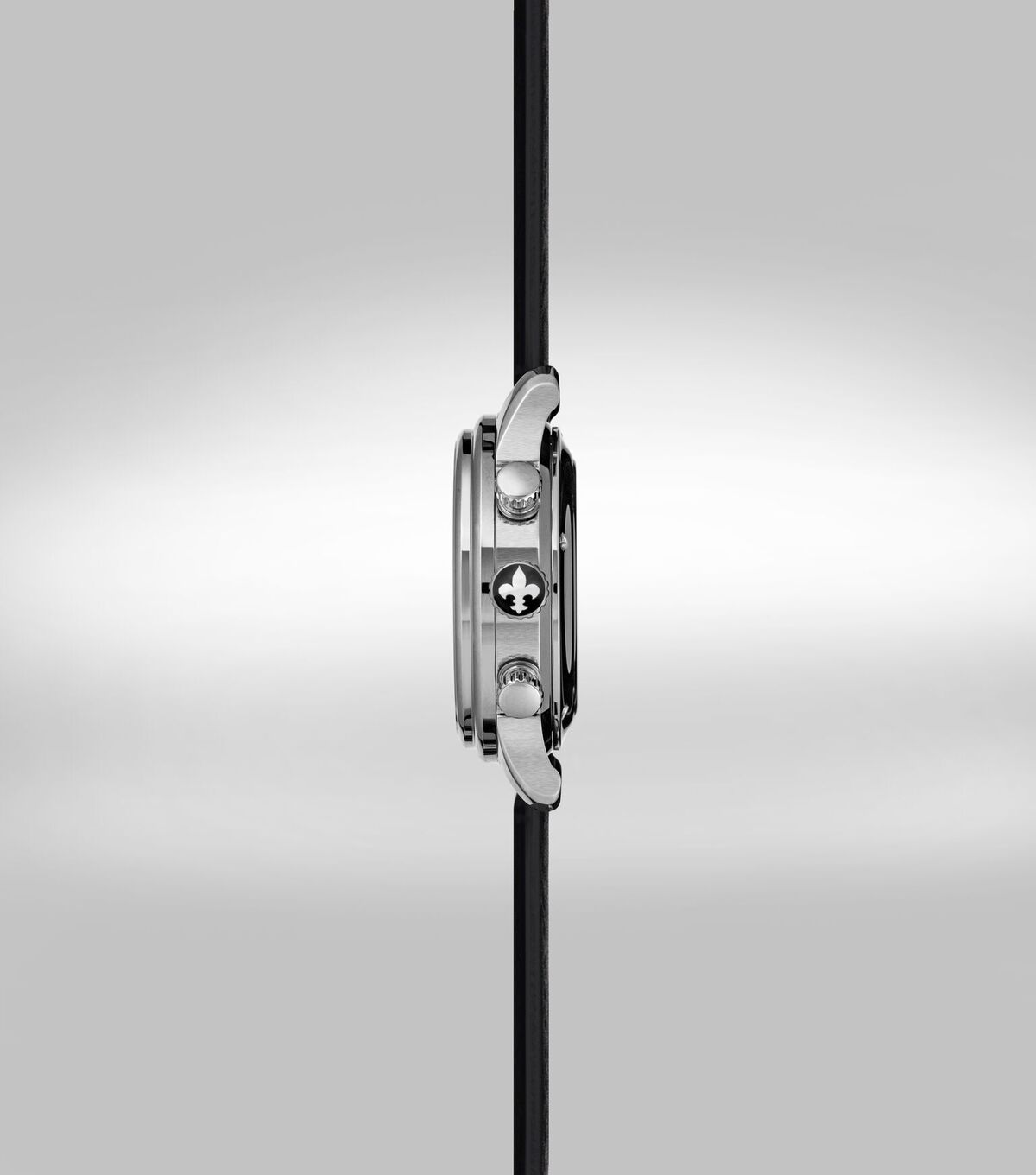 Wonderfully eye-catching, the M1-Woodward® Moonphase Timepiece as exclusively designed by the Detroit Watch Company, is a real favourite of ours here at The Coolector. It is polished with brushed accents 42mm case and an automatic self-winding 7751 movement alongside polished and blued hands, it is hard not to be won over by its considerable visual impact. The crown has the black and white Detroit Fleur-de-Lys for that extra touch of authenticity. The Woodward chronograph caseback displays all cities Woodward Avenue crosses from Detroit to Pontiac and this adds a real level of visual engagement to the already thoroughly impressive watch.