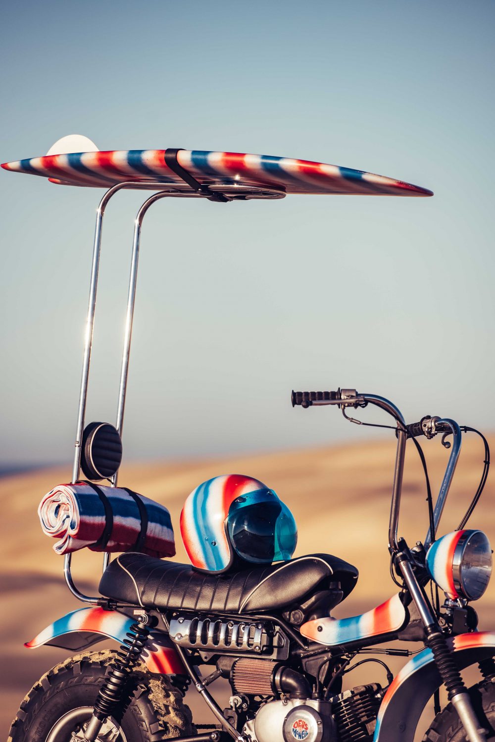 Whilst we typically gravitate towards stealthy looking steeds so far as motorcycles are concerned, there’s always room for a little colour in your life and that is something the at the Deus Ex Machina Goof Bike delivers in spade. It is made for fun, care-free days razzing around backroads or to the beach and for those with a carefree, adventure loving look on life will definitely appreciate the design of this fantastic contraption.