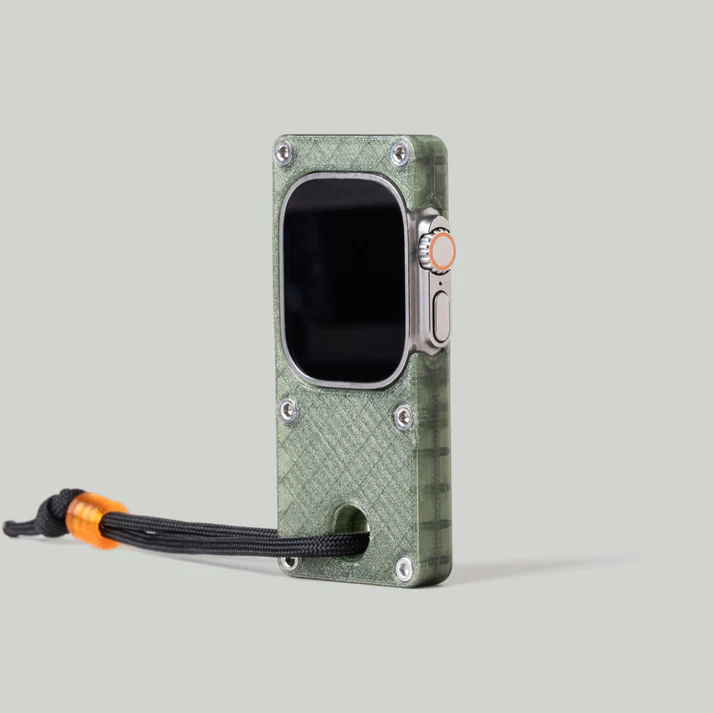But what if you could have both? What if you could strip the Apple Watch of its strap and transform it into the ultimate minimalist communication device? Enter the Elrow Industries Miniphone Ultra Case, a 3D-printed marvel that solves the two-watch problem with serious style.