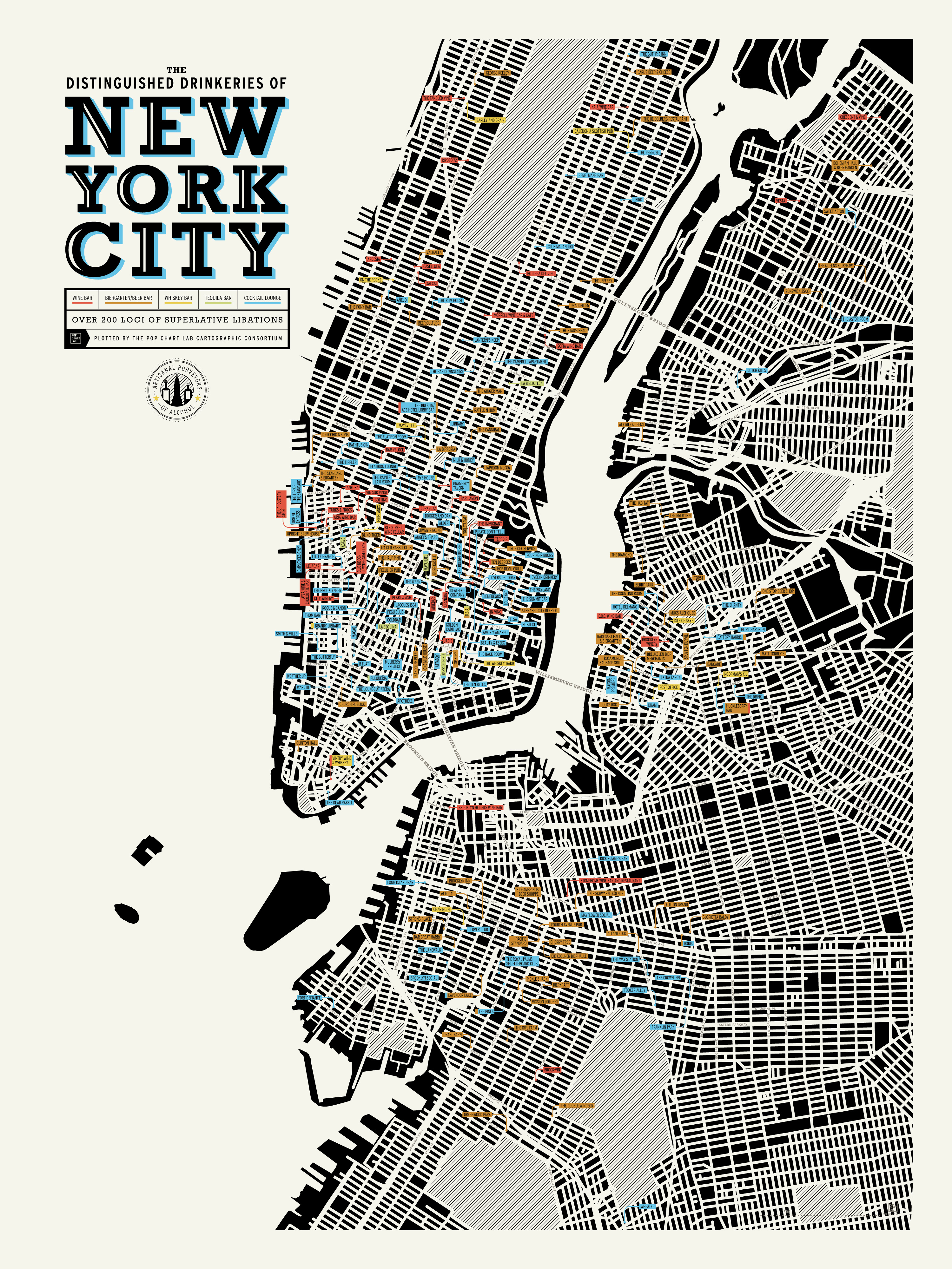 Having frequented New York a fair few times now, we here at Coolector HQ are devastated to admit that, given our touristy idiocy, we found it difficult to find the best bars in Manhattan in which to enjoy one of our favourite pastimes – namely, drinking. We required a Sherpa of sorts to guide us and steer us in the direction of the Big Apple’s best spots for boozing. Put simply, we needed this awesome looking The Distinguished Drinkeries of New York Print from the good chaps over at Pop Chart Lab. Lamentably, it’s come a couple of years too late for us but you can rest assured that it will be securely stowed away the next time we head over to New York.