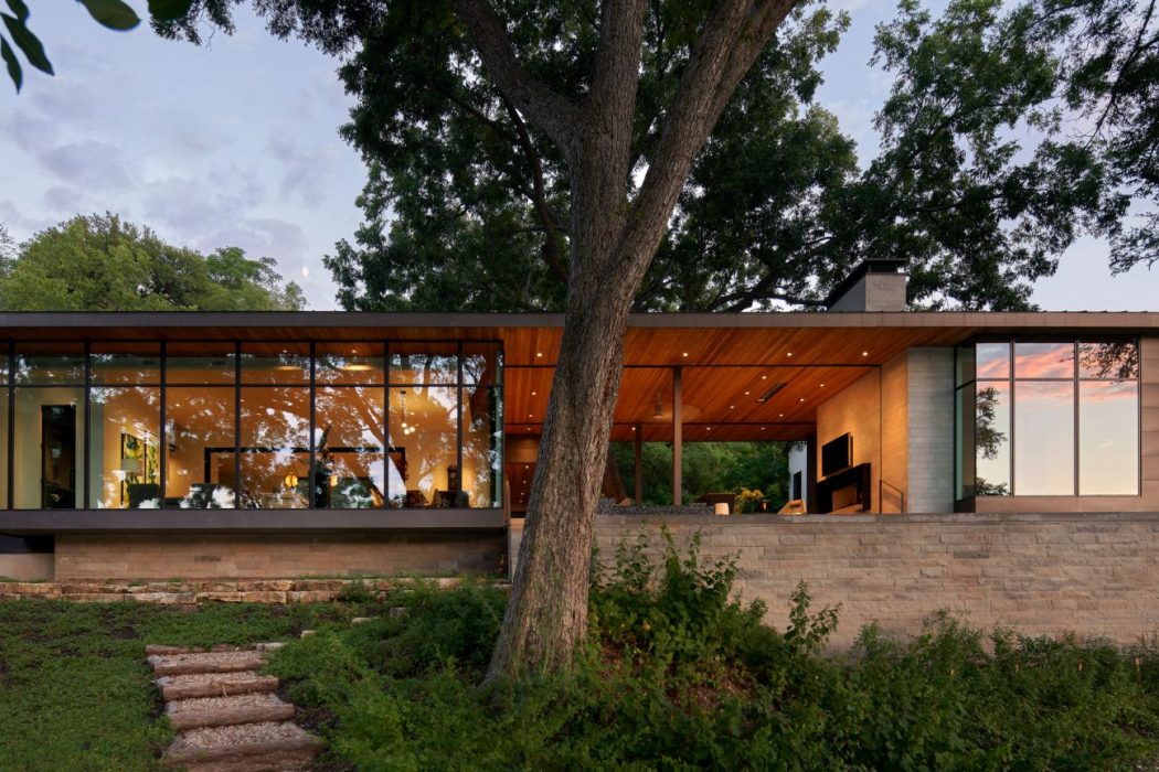 Dogtrot houses conventionally consist of two cabins separated by a central breezeway under a communal roof, cooling the house in the days before air conditioning and creating a sheltered semi-outdoor space to sit in. The LaRue Architects designed Dogtrot House in Austin uses a breezeway to separate the main house from the guest quarters and the interiors are spectacular to say the least.