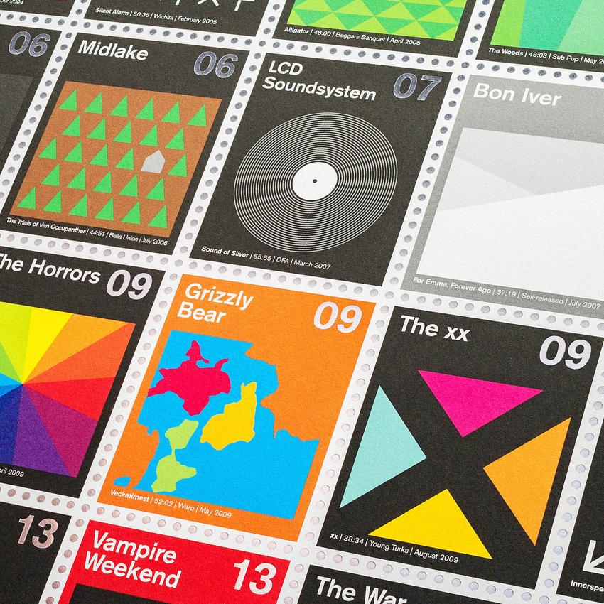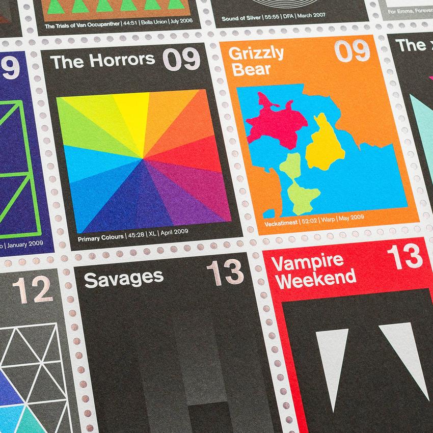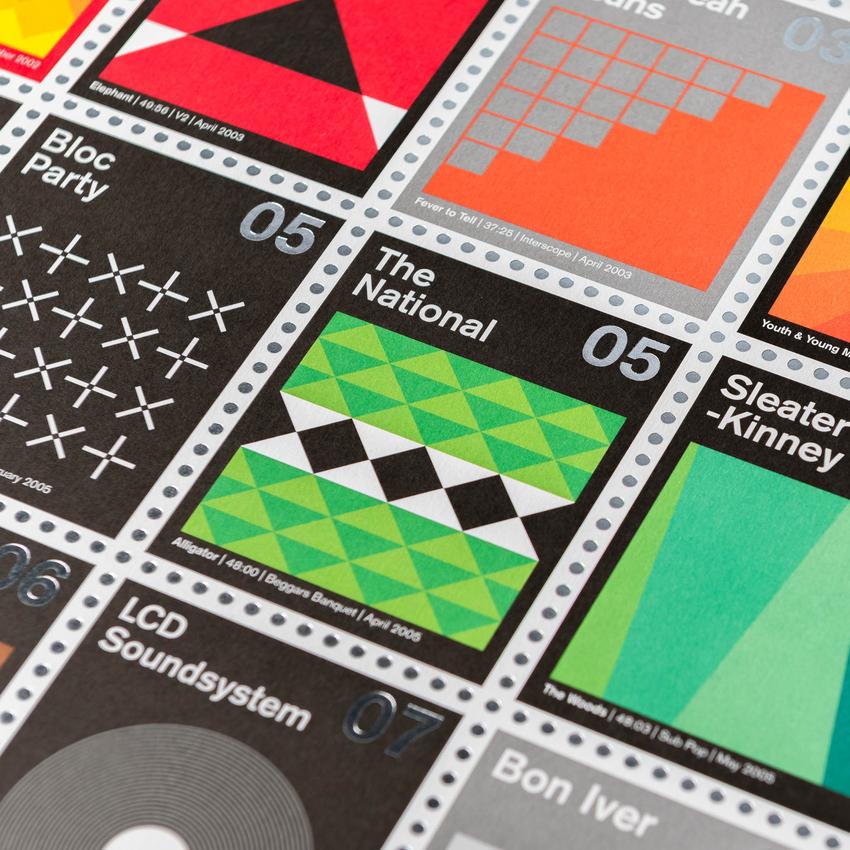 For the Volume 2 Stamp Albums Print from Dorothy, there are plenty more iconic bands to be appreciated and they’ve again been treated to their distinctive stamp style design. For this collection, things start in the year 2000 with the critically acclaimed Sophtware Slump by Grandaddy and finish off with Idles and their Mercury Prize nominated album Joy As an Act of Resistance and the legends of indie rock Low and their 2018 album Double Negative.