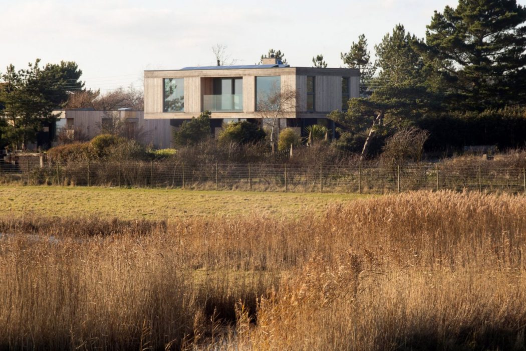 The beauty of Druim House from RX Architects is the fact it is situated in the Rye Nature Reserve and puts it at one with nature. The house was built over an existing foundation and ground floor and the architects built on this existing masonry base with a cantilevering upper-storey clad in Siberian larch, and ensured the house was positioned to maximise views across the landscape out towards the sea.