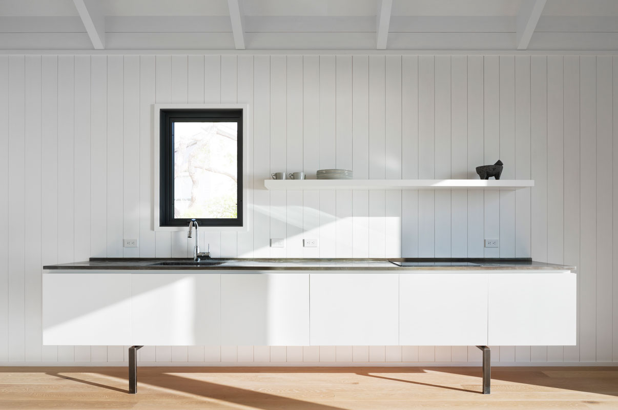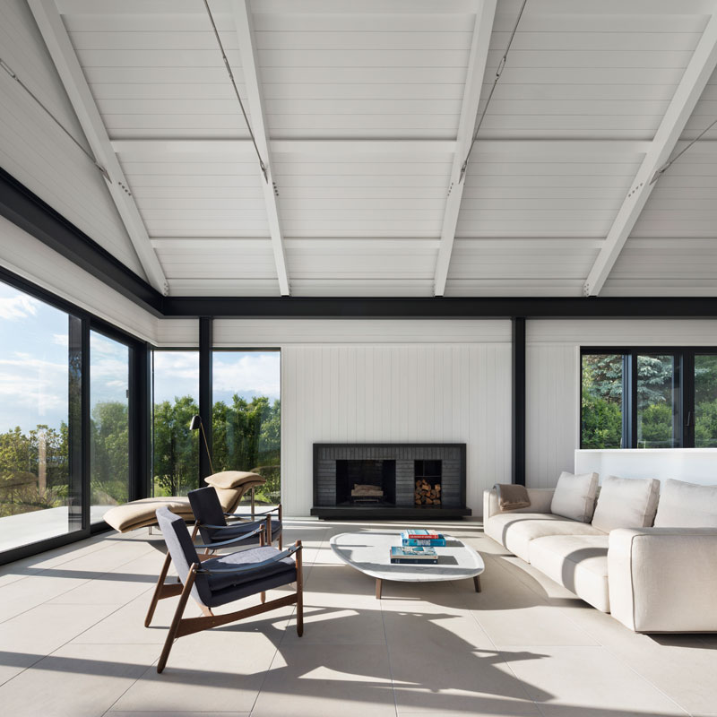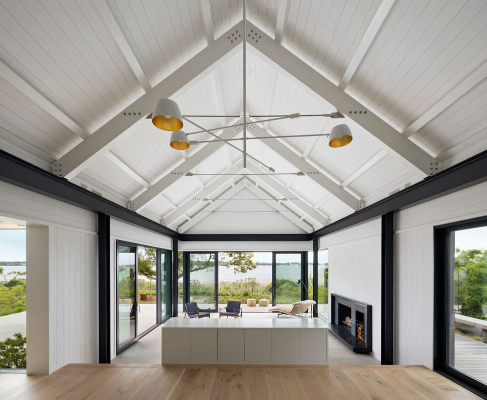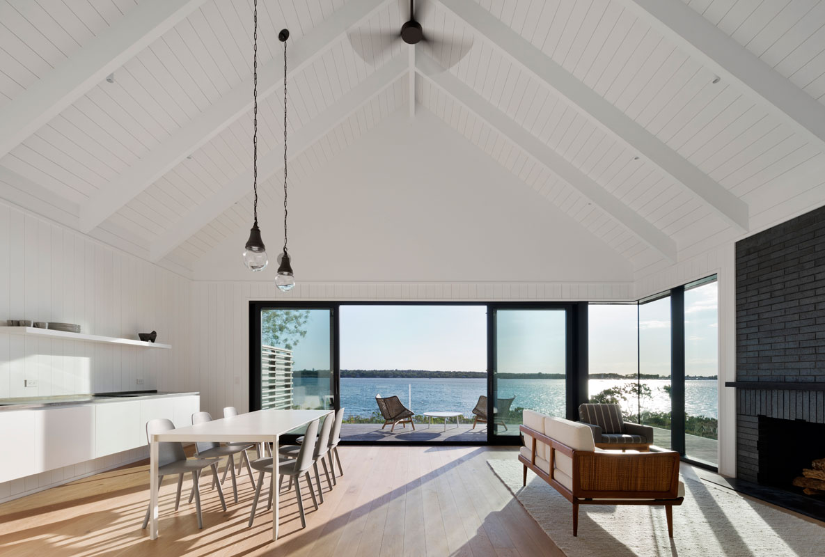 The more sheltered spaces of the East Lake House from Robert Young Architects deliver a cozy contrast to the wide-open water views that stretch out before it. The main living spaces are situated close to the ground, with only glass and oversized sliding doors acting as a divider between the indoors and outdoors, which delivers a stage for informal indoor/outdoor living in some considerable style.