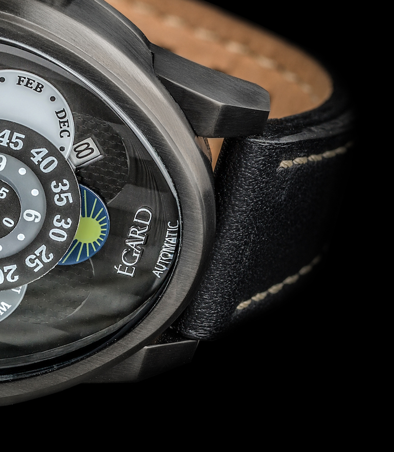 With a thoroughly engaging visual impact, the Egard Watch Co x Georges St. Pierre Rush Watch has three centre disks which rotate and align to show the time with the outermost disk displaying minutes, the middle disk in hours, and the centre most disk the seconds. This is a real treat for the eyes and will immediately capture the attention of all your watch loving friends when they see this epic timepiece on your wrist.