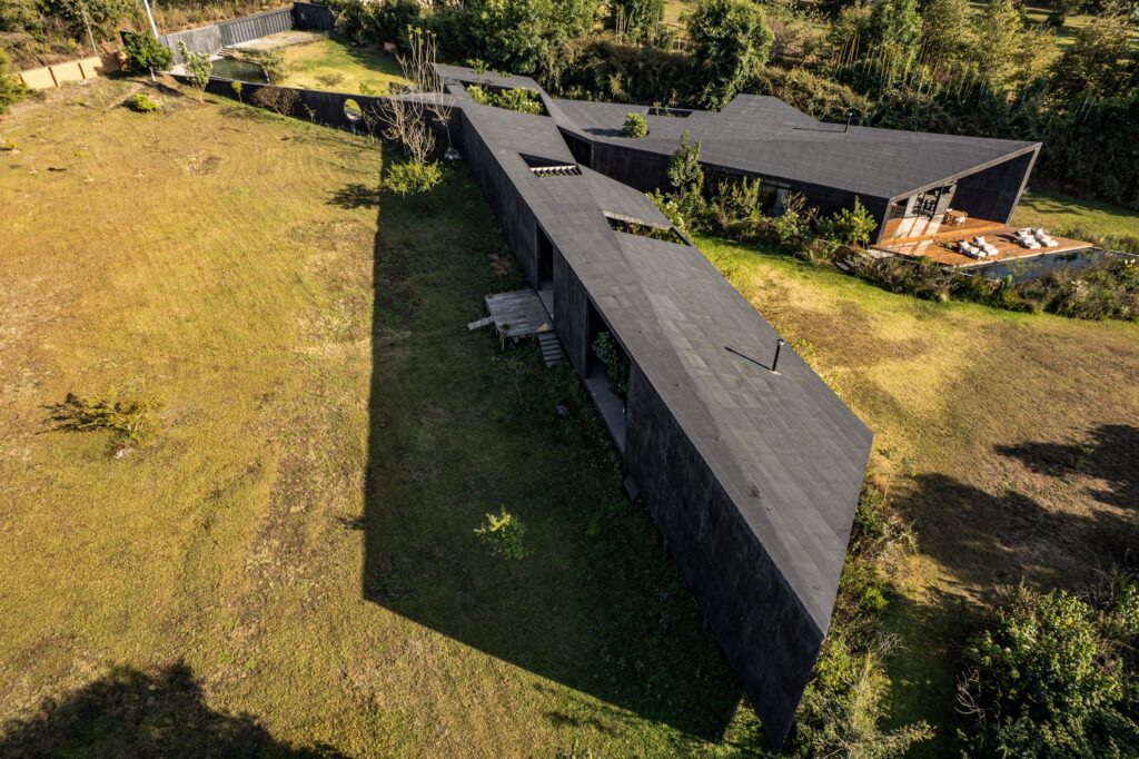 These geometric voids not only allow the local flora to thrive within the home’s footprint, but they also create an ever-shifting, mesmerizing dance of sunlight and shadow that moves across the dark interior surfaces throughout the day.