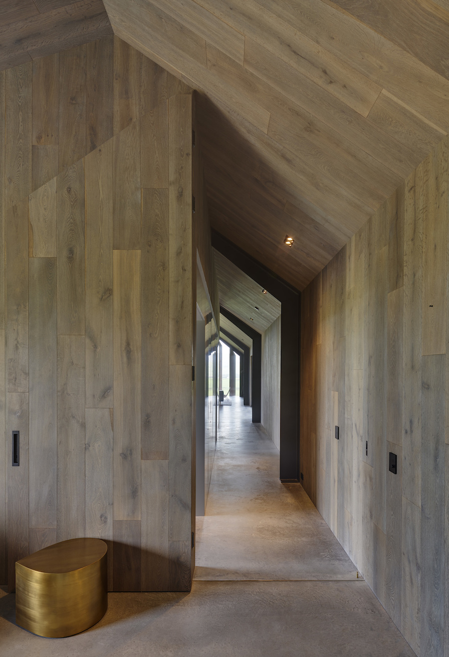 Situated on a breathtaking spot of coastland farmland with, quite frankly, out of this world views, the Escarpment House really does deliver the best of both worlds – namely, a luxurious yet understated living space and really amazing vistas everywhere you look. Taking up 125sqm, the design of Escarpment House explores the vernacular steel portal frame typology in an extremely refined and meticulous way. The simple rectilinear floor-plan has been aligned with the long edges facing North/South, and set up a robust primary axis as these also make best use of the ocean and countryside views.