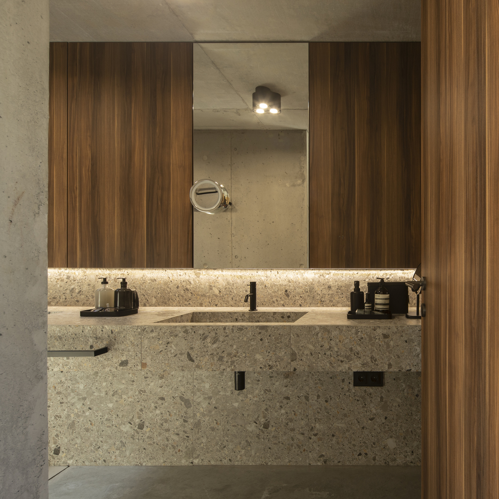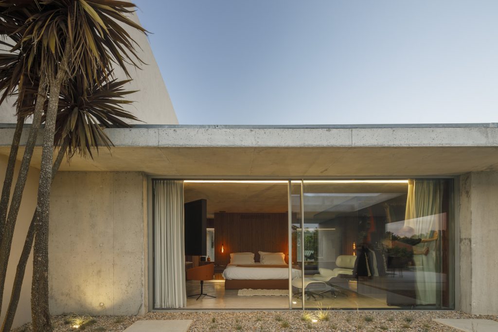Positioned on a downward topography plot which is facing west, with great views of the valley underlined on the horizon by the Serra da Estrela and Caramulo mountains, it’s hard to think of a more visually arresting position for EV House to be placed. The property has an array of overlaid volumes insuperable in its monolithic character, but still permeable within, which defines the exterior spaces which are imperative to the indoor space.