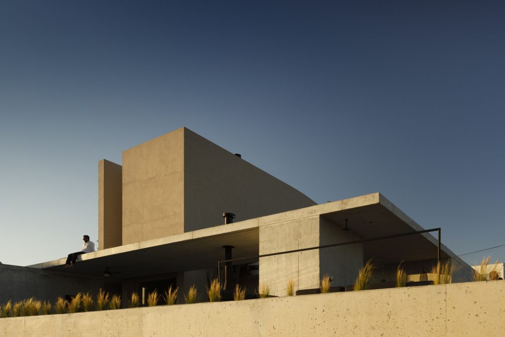 The main structure of EV House is also embraced by another volume which contains the juxtaposed main suite. The front of the main suite of this impressive piece of modern architecture extends into a western living space, permeable by the vegetative patios, ending in an area to relax in bed and to be around a fire.