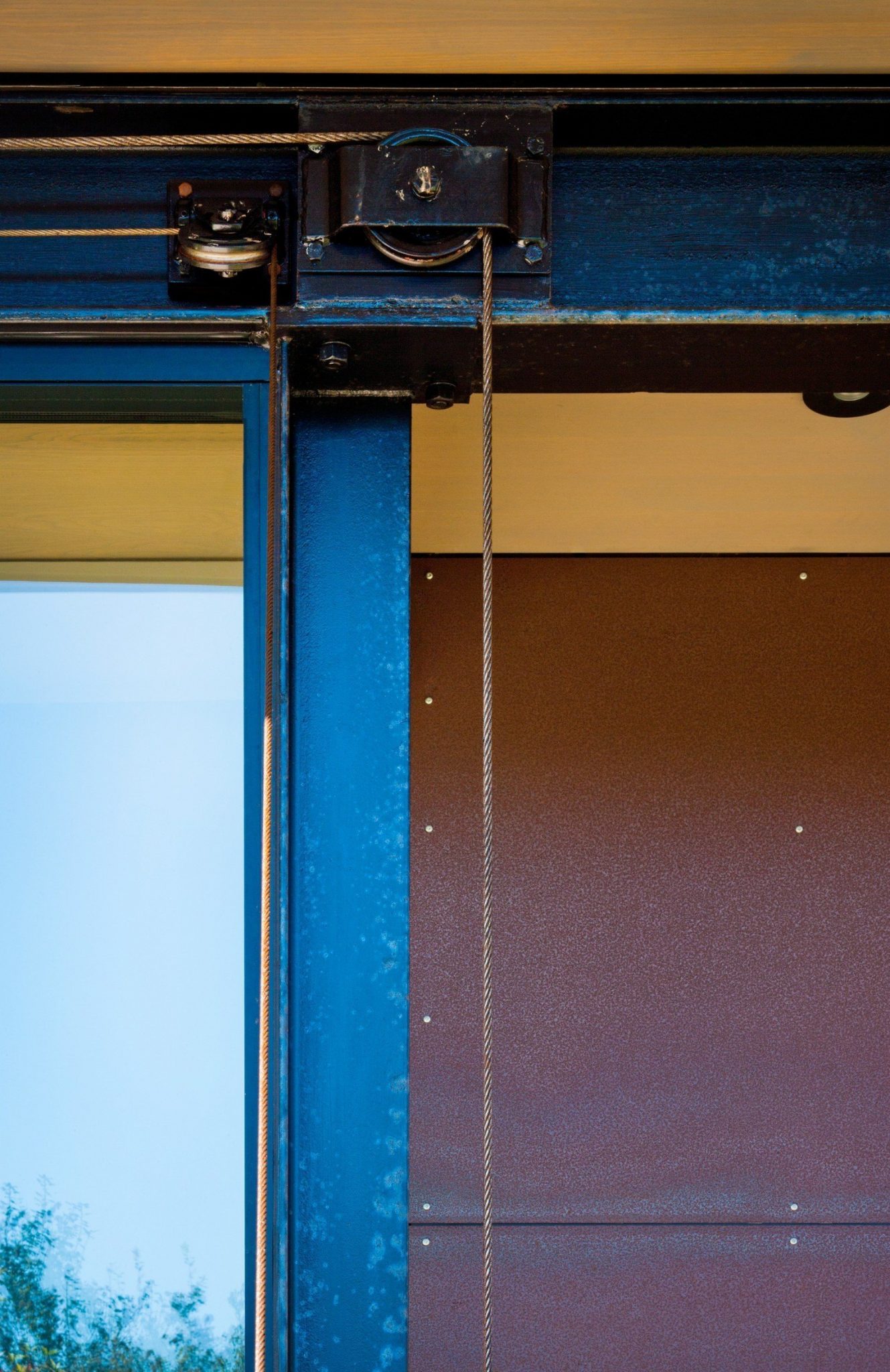 The pièce de résistance of the structure is the incredible folding walls which operate via an innovative system of hydraulic winches, wire rope, pivoting sheaves and lead blocks which all work in unison so that the decks can be raised to serve as shutters, completely closing off the cabin from the outside world. When they are open, the shutter-decks double up as highly functional outdoor living space which does a first rate job of connecting to the interior with eye-catching 10 foot tall windows and sliding doors.