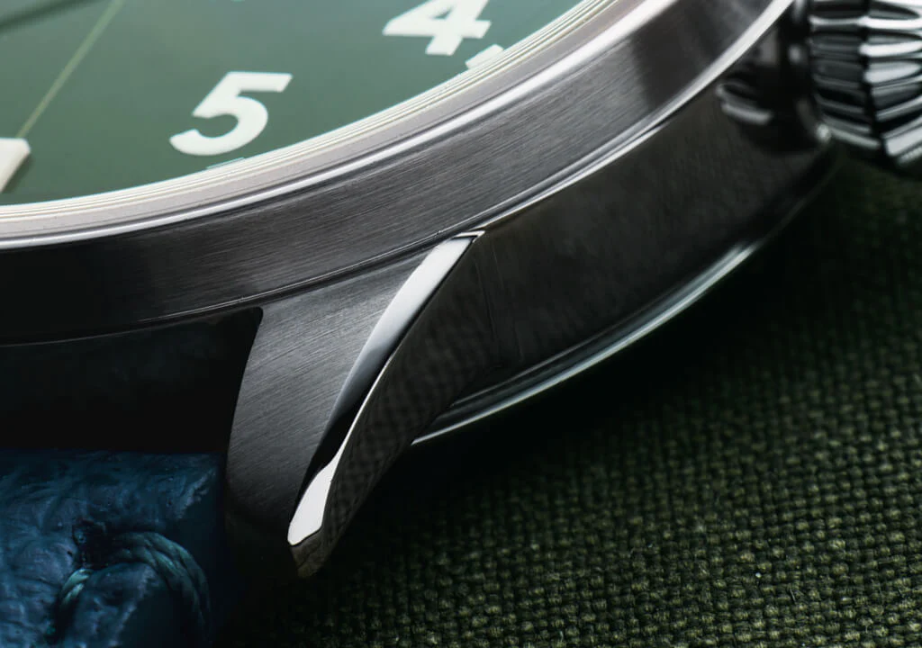 These eye-catching timepieces have a unique dial with a subtle sunray finish across the cut quadrant dial, and an oversized bevel edge finish. The bold and distinctive half-and-half “California dial” layout provides additional aesthetic appeal – a classic design reference which splits half the numerals on a watch’s dial between Roman and Arabic for clarity. At night the dial takes on a whole different life courtesy of the numerals being applied in solid cast off-white highest Grade A Super-LumiNova. This creates a spectacular beacon on your wrist, whether day or night flight.