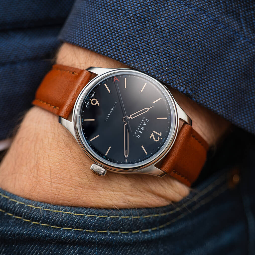 This brilliant watch is cut from 316L marine grade stainless steel and highly polished all over to really showcase its sophisticated profile. The use of a boxed cased sapphire crystal domed glass complements the case, and provides the overall watch a highly striking and utterly unique aesthetic. The Farer Erebus Automatic Watch has been designed with an open, exhibition glass back to view the SELLITA SW200-1 (no date) Swiss Made automatic movement and bespoke rotor – a real pillar of Swiss calibres, the SW200-1 is precise, reliable and robust. After an impeccable watch for under £1000 – this might just be the pick of the bunch.