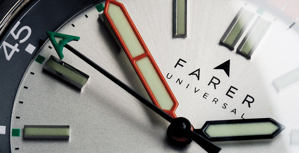 There is a fantastic, functional excellence to the Farer Leven Watch and the super-smooth silver sunray dial lends a timeless sophistication to the visual impact. Boasting raised polished track batons around the dial and a clear double baton marker at 12, all infilled with off-white Super-LumiNova, square colour blocks edge the batons which catches the light with a pop of unexpected colour in teal. There is the characteristic Farer oversized dive hands in contrasting colours accent the dial; black polished steel for the hours and burnt orange for the minutes.