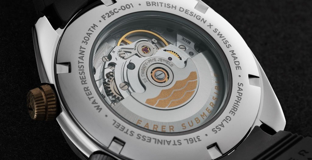 Farer pride themselves in creating products that stand the test of time and the Leven Watch is a fine example of these endeavours. They design their watches meticulously in London before they are handmade, without compromise in Switzerland and the end result is quality personified. That’s why we they offer a 60-month / 5-year movement guarantee on all Farer watch movements and the Swiss Made ETA 2824-2 Non-Date Elaboré movement used here comes with the bespoke Farer rotor with engraved submersible wave design.