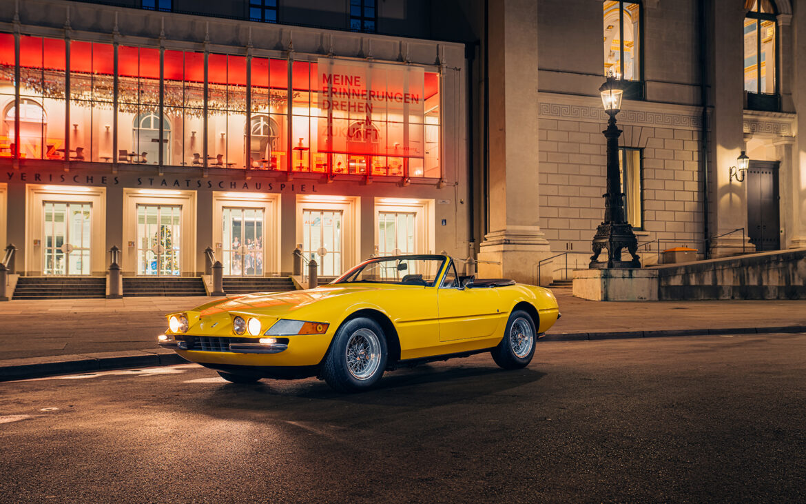 This glorious looking Ferrari 365 GTS/4 Daytona Spider from Schaltkulisse has just 58,000km on the clock and comes in an immeasurably striking Giallo Fly colourway which will undoubtedly turn heads wherever you take it. The Ferrari 365 GTB/4 was unofficially named the “Daytona” after its 1-2-3 victory at the 1967 24 Hours of Daytona. With its now new V12 with 352 hp, the Daytona became the fastest production car in the world, surpassing the Lamborghini Miura.