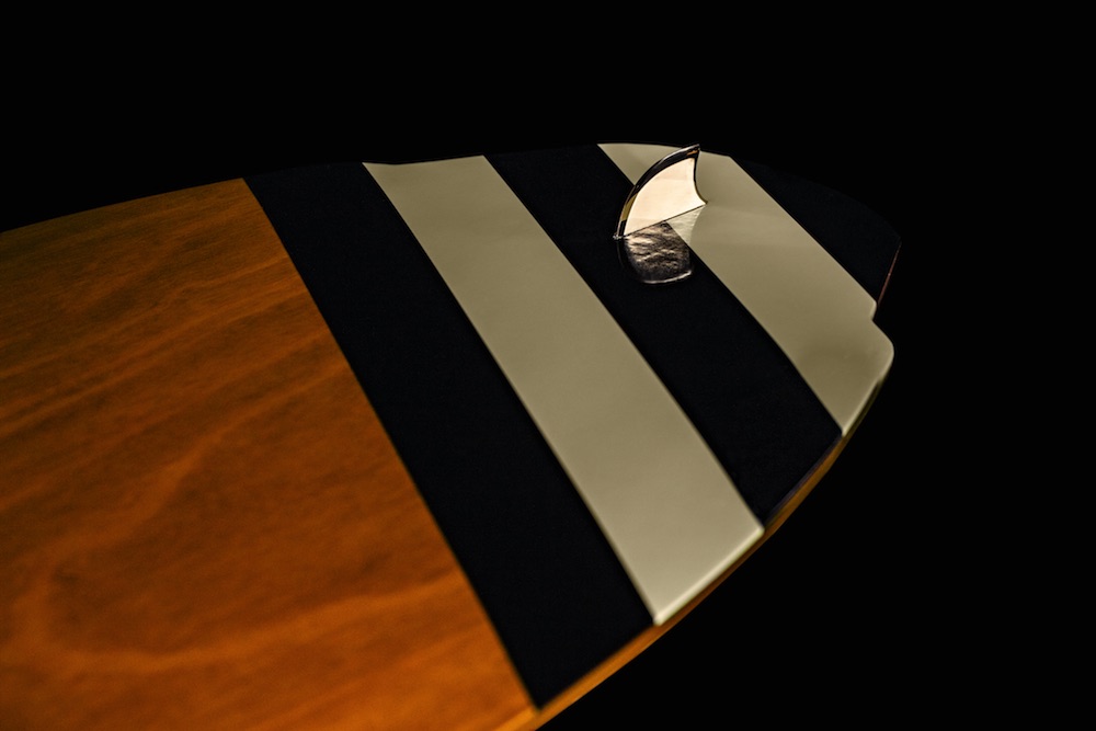 As with each and every wake surf board that emerges from handcrafted Fitzke assembly line, layers of Lloyd’s Register marine-grade mahogany and carbon fiber are vacuum pressed together with epoxy to deliver the signature core structure before decking with stain and graphics. These great looking Sidecar Wake Surf Boards from Fitzke are available in vintage looks as well as botanical styles that are a nod to lumber which has been sourced from the Philippines. After high-gloss marine-grade varnish is applied, the finishing touch is achieved with a handmade, polished brass tracking fin that draws the eye and adds a touch of class to proceedings.