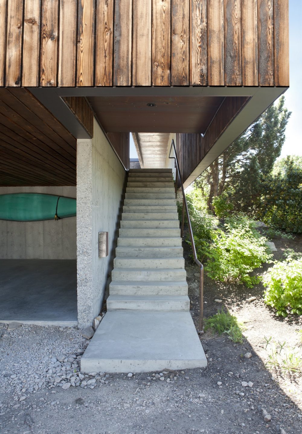 The continuous cantilevered floor slab of the Friesen Wong House contrasts with a rocky ground plane that undulates below, and delivers sectional diversity and a rich variety of interior experiences. When you head within you’ll discover varying degrees of exposure to daylight which ranges from blue northern light to orange western light. The planning is understated and uncomplicated, with the living areas, master suite and children’s bedroom all positioned within distinct zones of the house. There is a pottery studio and shop above the carport which further enhances the sense of distance between dissimilar functions.