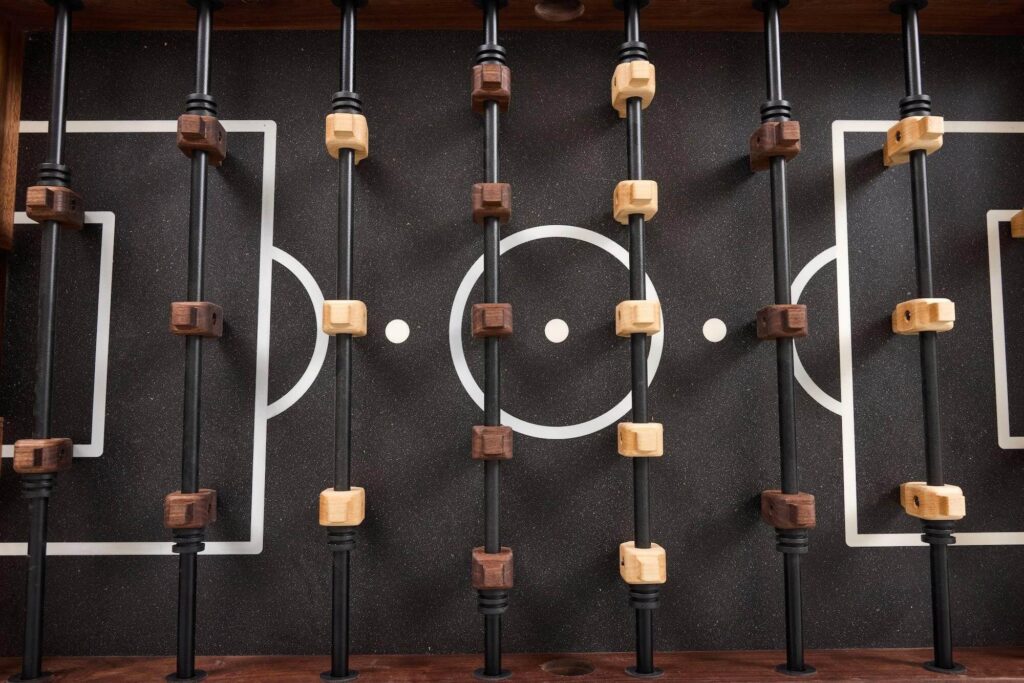 A luxury foosball table still has to perform under intense pressure, and this heavy-duty rig is built to handle the most heated rivalries with ease. The custom-made timber handles offer incredible tactile warmth and grip, allowing for lightning-fast wrist flicks and pinpoint accuracy.
