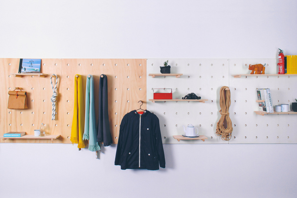 This top not storage solution is a modular shelving system that is built with sensibility in mind insomuch as it provides a highly useful storage area in which you’ll be able to keep all manner of personal belongings. You can take a look at a few more shots of the Bang Bang Peg Board below: