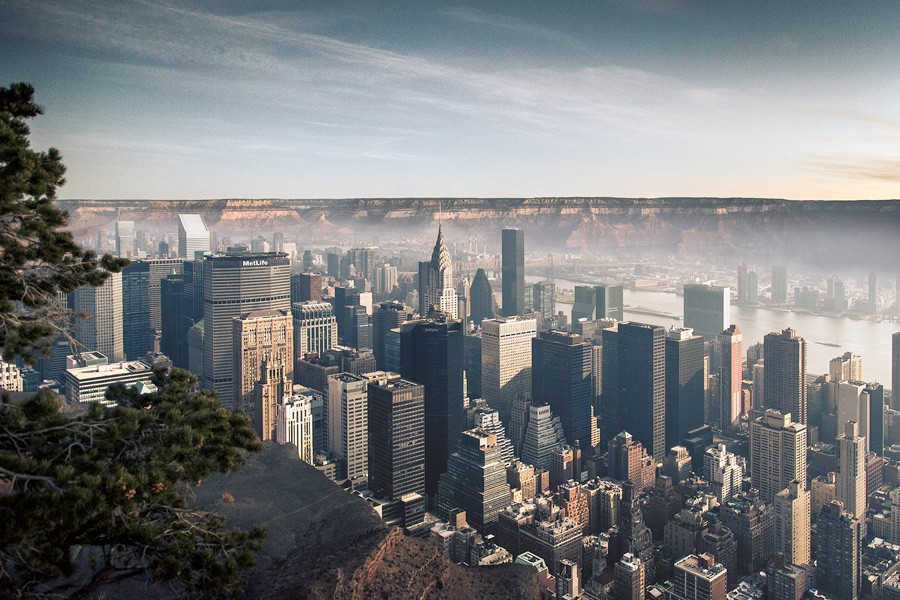 After a recent trip to the USA, Swiss photographer, Gus Petro, was taken aback by the stark contrast between the bustling metropolises like New York City and the barron desolation of the Grand Canyon and was inspired to create this exceptional series of photographs entitled “Merge”.