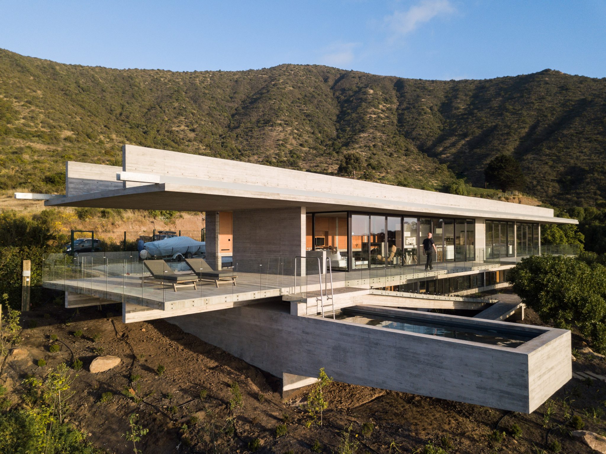 You’ll be hard pressed to find a better positioned house than the H House in Chile because it doesn’t just have the aforementioned exceptional views of the Pacific Ocean, it’s also got a stepped path which winds its way down to a nearby beach so you can go for a swim as and when the mood takes you. The property itself has an uncompromising, elongated form which delivers a compelling and eye-catching contrast against the verdant mountainside that surrounds it.
