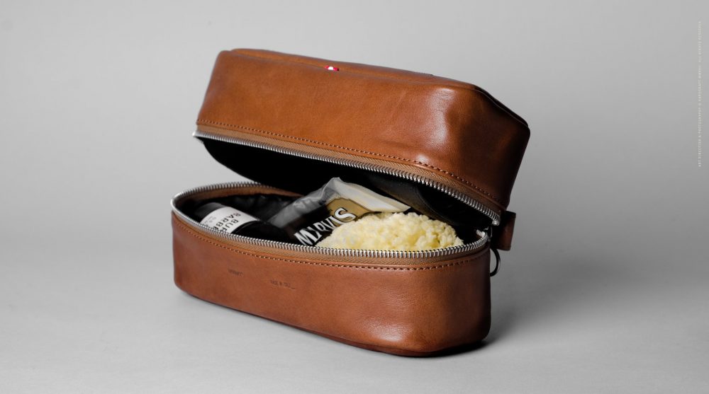 With such a versatile and functional design, the Hard Graft Full Disclosure Dopp Kit has the added sense of exclusivity that comes from knowing that you’ll be one of just a few people who own one in the world. This top notch accessory has a striking, rich leather outer that offers a real tangible quality to the touch. It has a wipe-clean lining, which is important for any grooming accessory in case of spillages in transit and the aesthetic appeal of this dopp kit really is second to none.