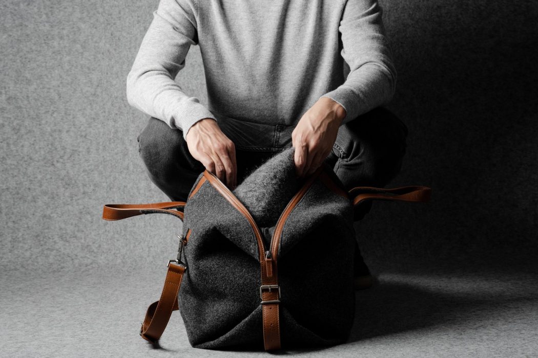 Don’t even get us started on the quality of the materials. As we’ve come to expect from Hard Graft, no expense has been spared in the crafting of this majestic looking Layover Holdall (hence the lofty price tag). It uses melange grey wool felt paired with their Classic Brown vegetable tan leather. The bag is lined with dark grey wool and finished off with quite a bit of vegetable tan leather detailing. Everything has been crafted in Italy to the highest standards and this delivers a real tangible sense of quality throughout.