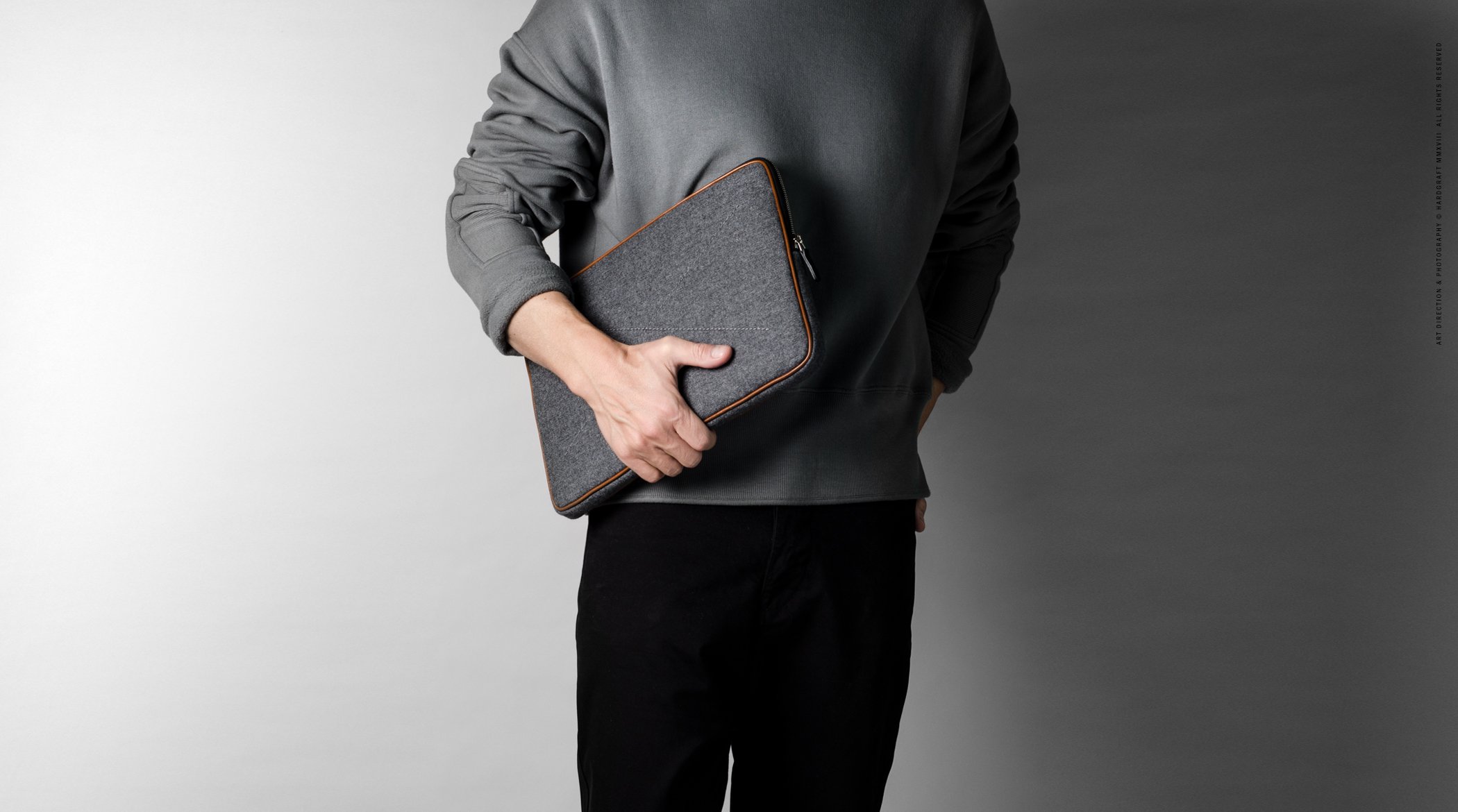 The Zip Up Folio Case from Hard Graft is made with the same attention to detail as a sharp Italian suit and boasts a relaxed, comfortable fit for your MacBook which will ensure you always carry it in considerable style whilst out and about. This first rate accessory from Hard Graft boasts wonderful craftsmanship and is made from a combination of fine Italian wool fabric, and rich vegetable tan leather piping for an unparalleled visual impact and tangible sense of luxury.