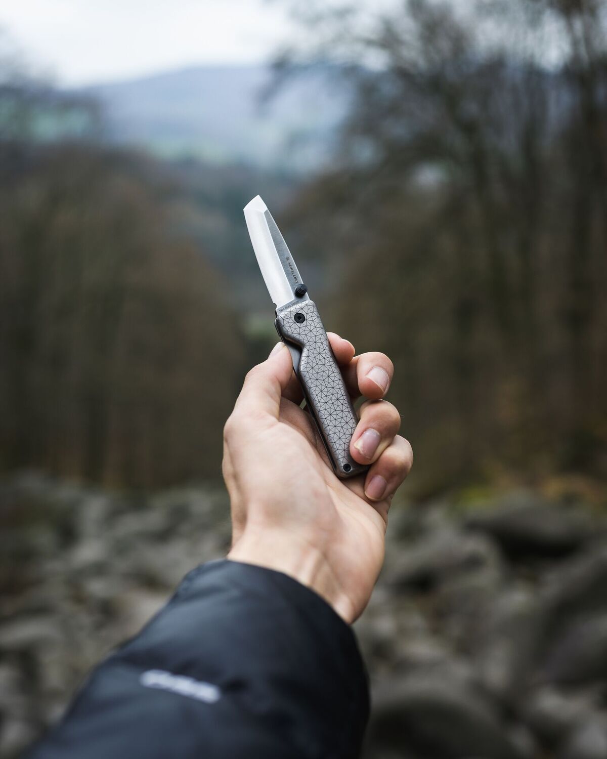 Boasting a S35VN blade steel, a tanto blade shape, ceramic bearings, and a custom laser-etched version of HEIMPLANET’s Cairo Camo geometric grid pattern for enhanced grip, there are an awful lot of impressive features to appreciate with this cracking collaboration project. The Cairo Camo pattern fuses traditional Arabian patterns and the tectonic structure of a mountain forest and delivers a visual impact above and beyond what you’ll find with other pocketknives on the market.