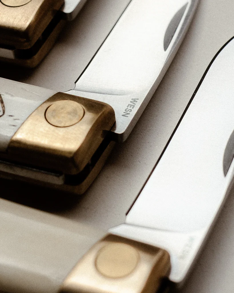 Beyond the aesthetics, the knife is a triumph of manufacturing ethics and practical design. P&Co operates on the philosophy that “what you make is only as good as how you make it,” a sentiment that aligns perfectly with WESN’s reputation for precision engineering. The construction features brass metalware that will develop a rich, golden patina over time, darkening and evolving alongside the ox bone handle.