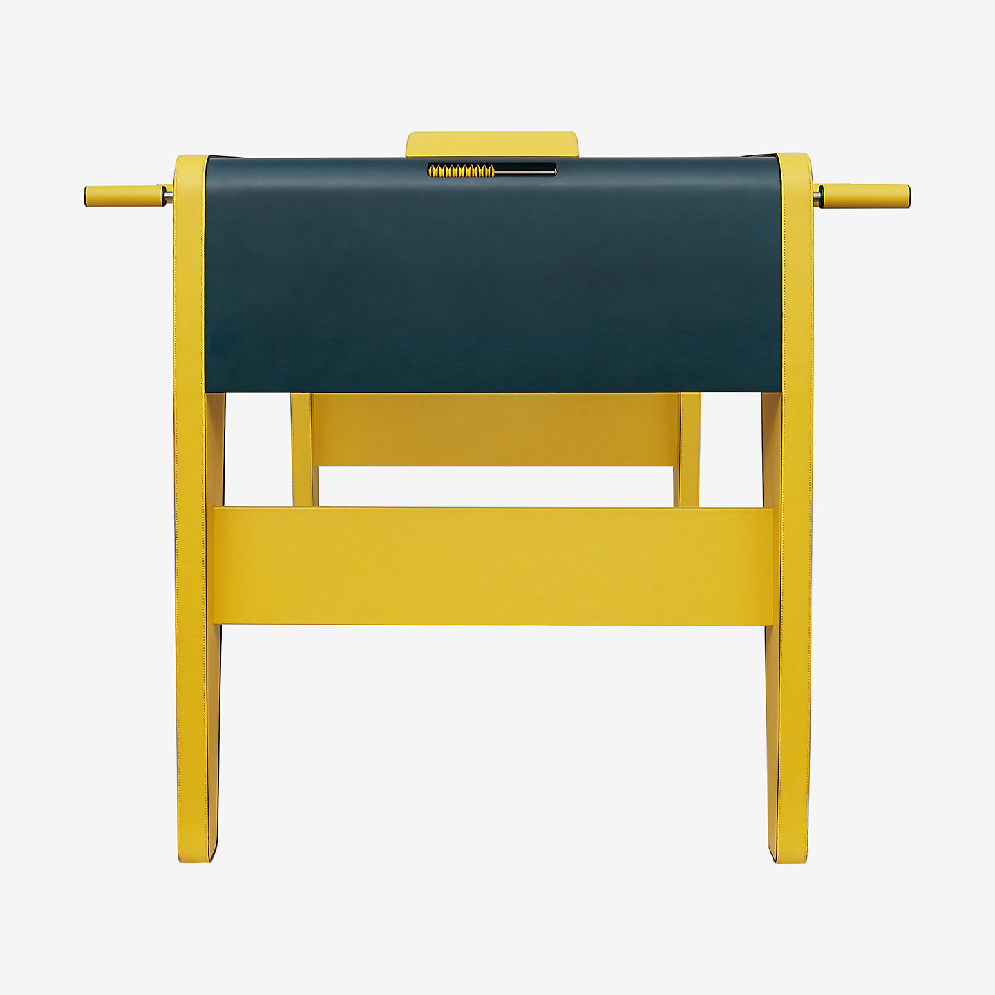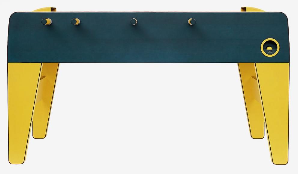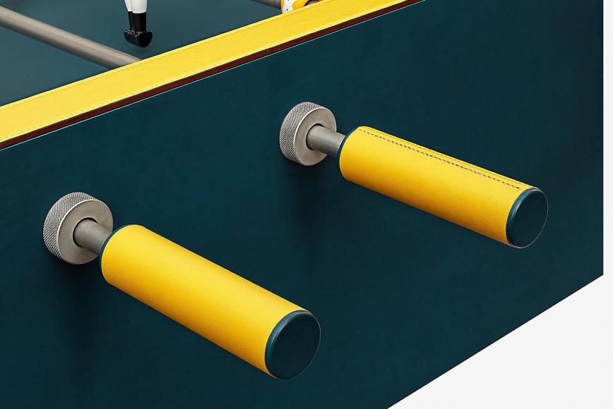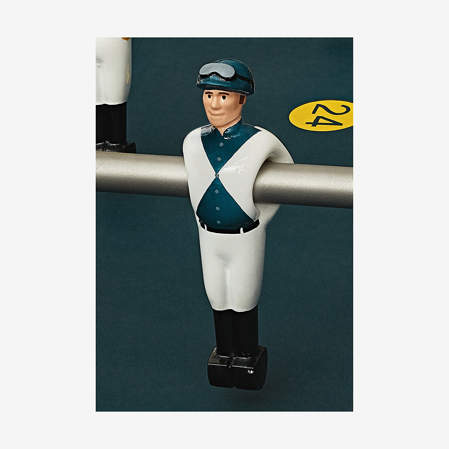Filled with uniform rows of uniformed Jockeys, the striking yellow base, trim, and handles of the Hermes foosball table sit perfectly against the racing green top. The vivid jockeys’ jerseys are delicately detailed and come complete with goggles, a helmet, beaming smile and a glimmer in their eyes; think Edgar Davids and Miroslav Klose. Game on.