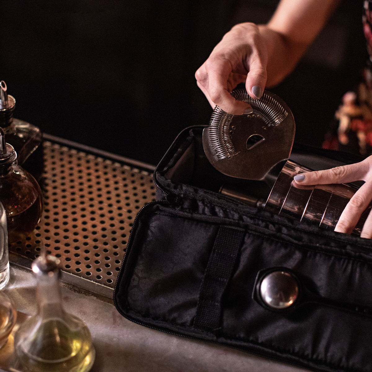 The Hex x Tillit Bartender Backpack ($195) has an interior which is insulated, padded and boasts adjustable flaps for simple customized packing configuration while keeping glass and tins safe. The internal essentials kit bag nestles inside the main backpack but pops out as a stand-alone case. It’s designed to hold shakers, strainers and tools in a compact case you can stash behind the bar.