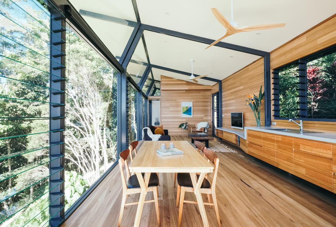 Winner of the Australian Institute of Architect’s small project of 2017, the Hidden Studio in Cooper’s Shoot from Harley Graham Architects is a real sight to behold and goes to show just how expansive a small space can feel when proper attention is paid to the design processes. The Hidden Studio is nestled amongst the trees on a 20 acre property at Coopers Shoot and an existing house and writers cabin on the same spot which was designed by the accomplished ‘Sydney School’ architect Ian Mckay, was the catalyst for this eye-catching structure.