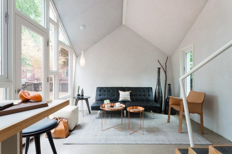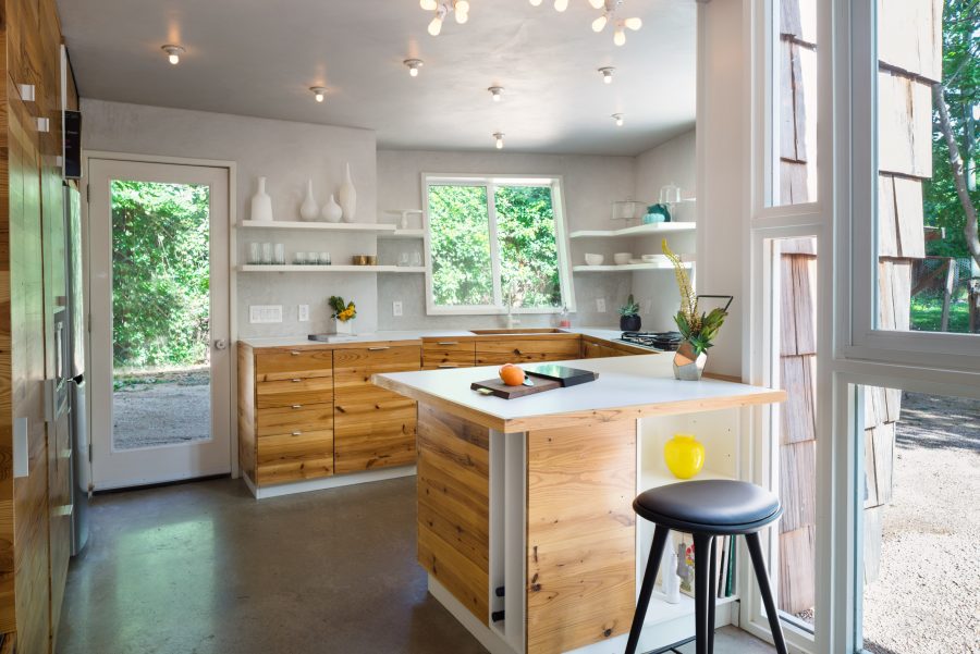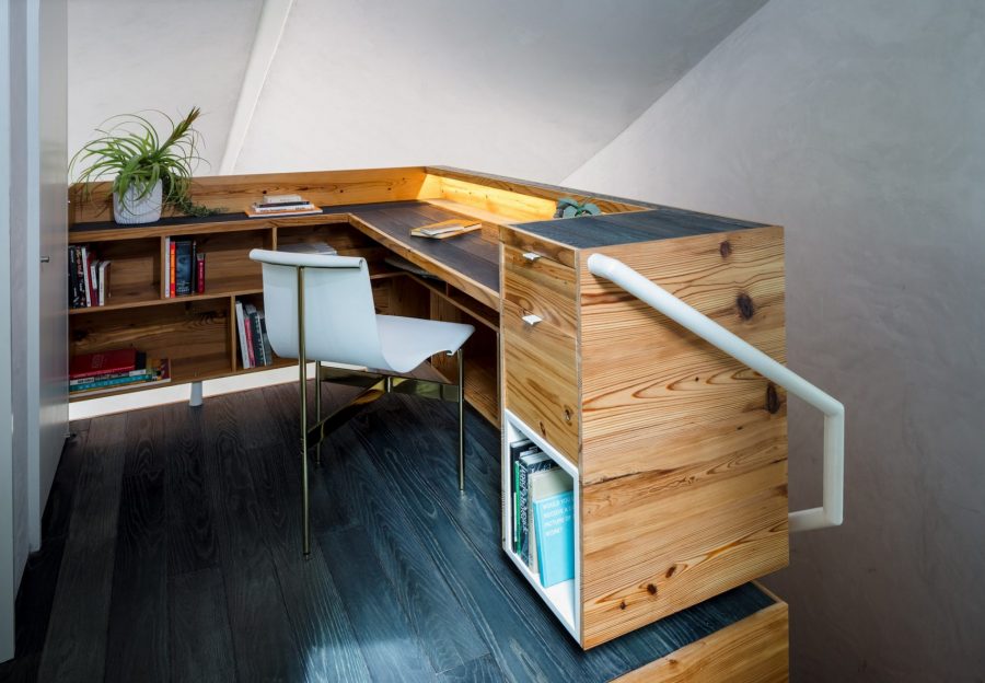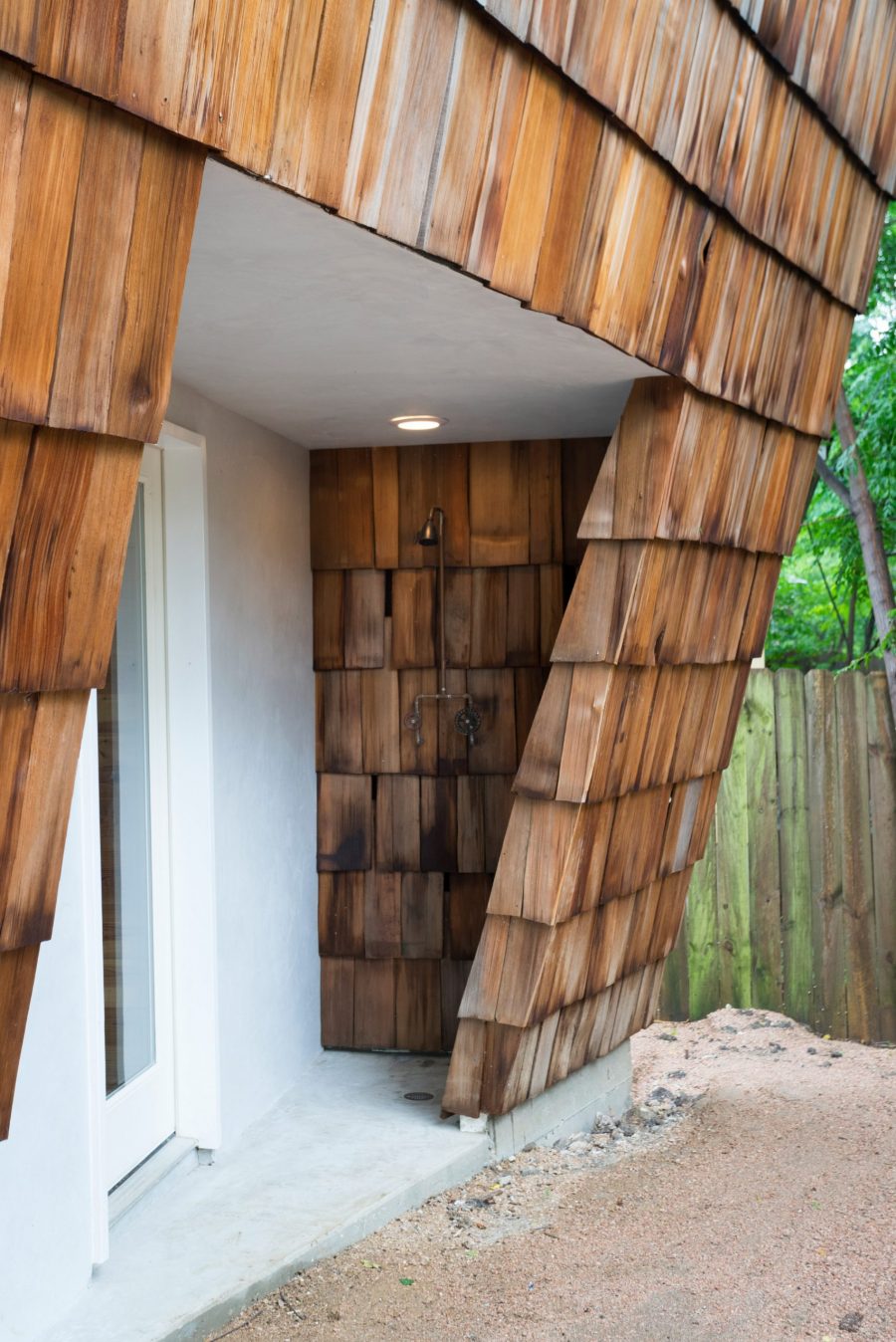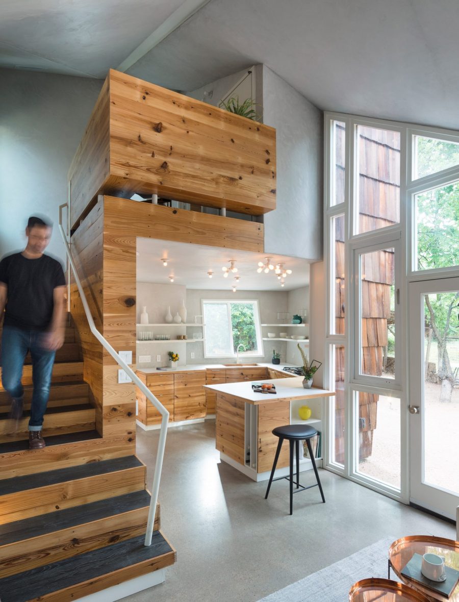 The Hive Guest House from Studio 512 is undoubtedly one of the most unique looking structures in Austin and it boasts angled walls which have been clad in oversized shingles for a highly striking visual impact. The are also a variety of interior spaces that narrow and widen based on how they are used to add a real sense of space to the interiors that you might not expect when viewing the property from the outside.