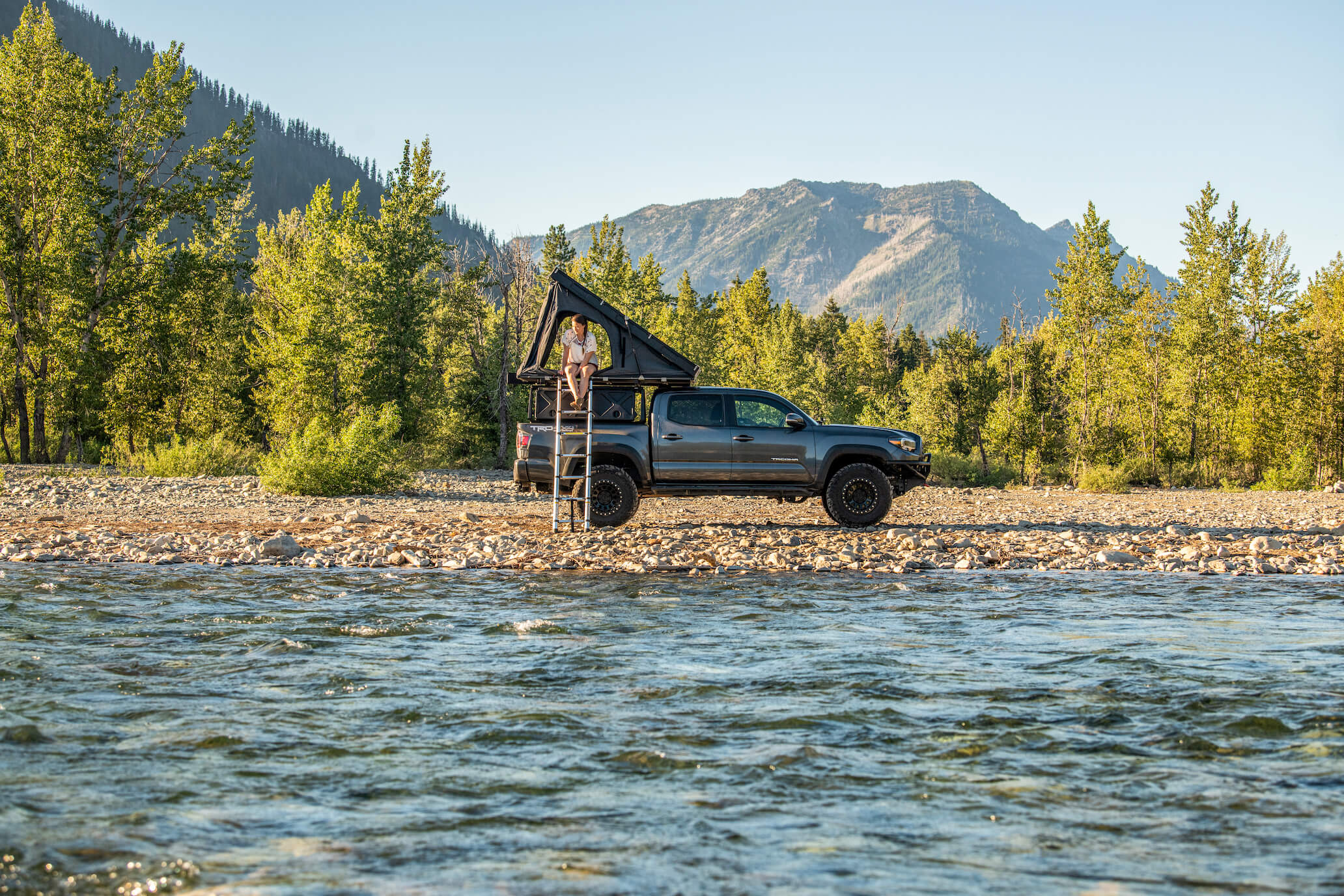 Available in a one or two-person version – $2899 for the one-person and $3699 for the two-person – the iKamper Blue Dot Voyager Rooftop Tent is built by hand, for adventure. It is ready to load with all the gear you need for a wilderness road trip without cutting corners. Configure the ladder on the driver’s side, passenger side, or rear of the tent, whichever is best for your vehicle.
