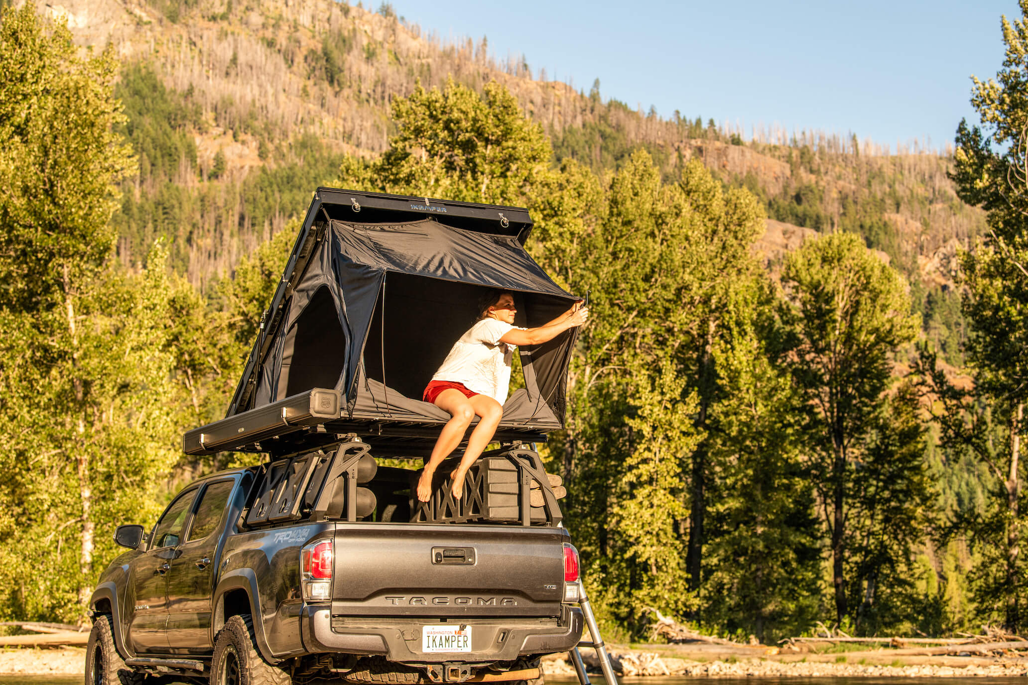 The simple ladder and wedge design of this rooftop tent from iKamper makes it easy to move your vehicle without packing up camp. If you’d prefer your RTT ready-to-use out of the box, the BDV Duo is also available to purchase preassembled. Precision-crafted to endure the elements, this is one rooftop tent that won’t let you down. The BDV has an FRP exterior in Rocky Black finish for resistance against road debris and UV rays.