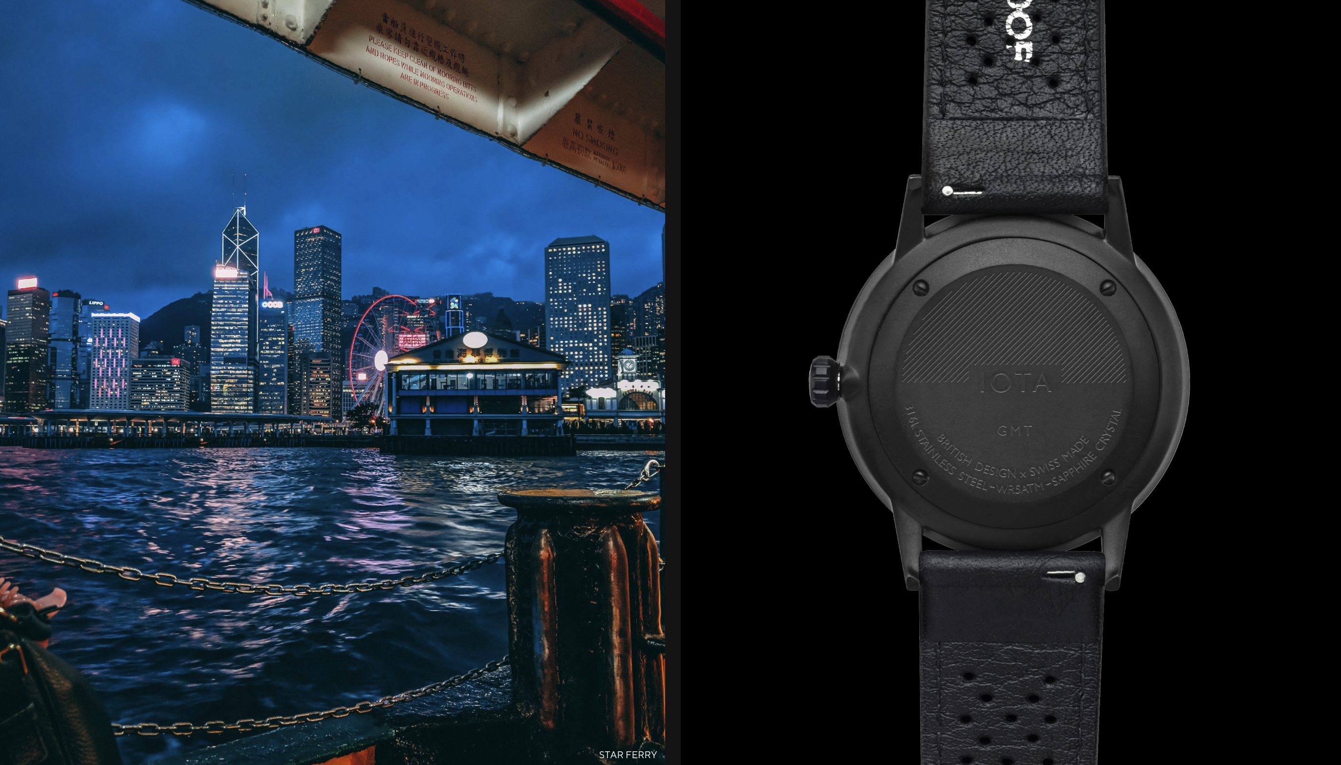 We’re loving the special edition The Hong Kong GMT Watch from Iota (£295) here at Coolector HQ. The black on black design of this was takes its inspiration from one of the watchmaker’s favourite cities – Hong Kong. A city that comes to life at night with its light show and neon signs. Hong Kong is the gateway to China and the west. A unique blend of many cultures it is unlike any other city on earth; great food, shops, nightlife and heritage and this watch is a celebration of that fact. This special edition GMT features a DLC or “Diamond like carbon” coating that measures only a few micrometers thick. The process involves the surface being vaporised with a diamond-like carbon layer to create an incomparable surface hardness and a deep black appearance.