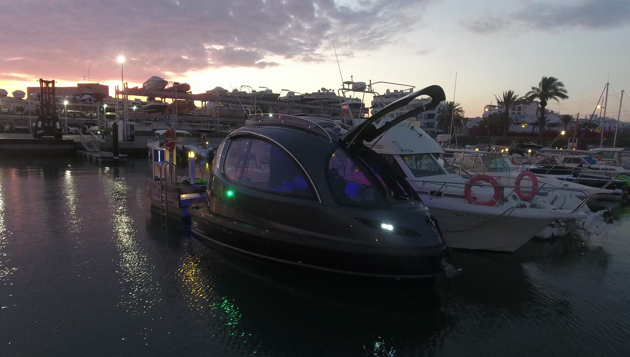 All of them utilize the shape of the Jet Capsule to the fullest and give a sense of luxurious yachting with a much smaller footprint than many modern competitors. As impressive as the interior configurations are, what really struck us was the Jet Capsule’s materials and design. The boat is made of 70 percent carbon by way of vacuum-infusion molding. It has photochromic windows all around. These windows change their transparency in response to light intensity.