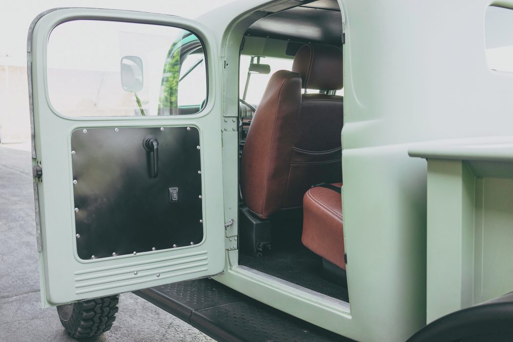 Needless to say, there is a bit if a military vibe to the Legacy Classic 1949 Dodge Power Wagon 4-Door given the choice of colour way for the vehicle and this adds to its appeal still further in our opinion here at The Coolector. It is finished off in the muted matte green exterior with a effortlessly cool, brown leather interior. This first class truck comes equipped with Fast electronic fuel injection, an aluminium radiator, a Braden MU-2 winch, front and rear ARB air lockers, four-wheel disc brakes, and air conditioning so it’s a vintage shell with a highly contemporary performance.