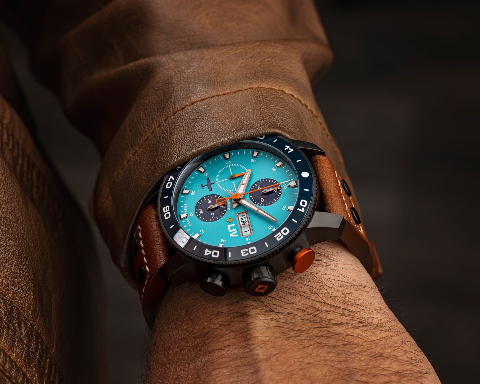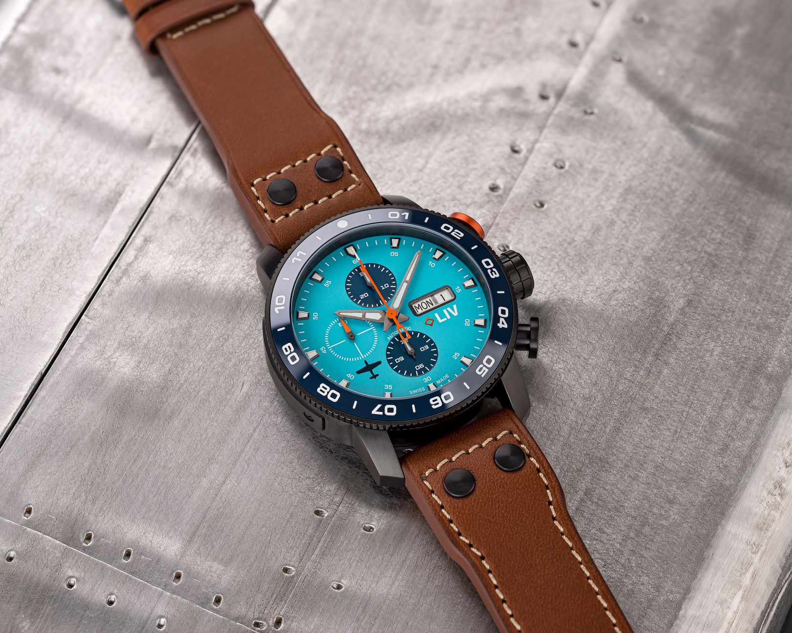 There is a lot to be said for timepieces that are capable of turning heads and that’s definitely an accolade that the LIV P-51 Cripes A’ Mighty Watch is worthy of. This striking timepiece from American watchmakers, LIV, features a flat open blue dial, an ETA 7750, 25-jewel Swiss automatic movement, a day-date window, a 42-hour power reserve, a black high-grade titanium case with skeleton case-back, unidirectional 120-click polished blue bezel, a scratch-resistant not to mention anti-reflective sapphire crystal, a screw-down crown, and an impressive water-resistant of up to 100 meters.