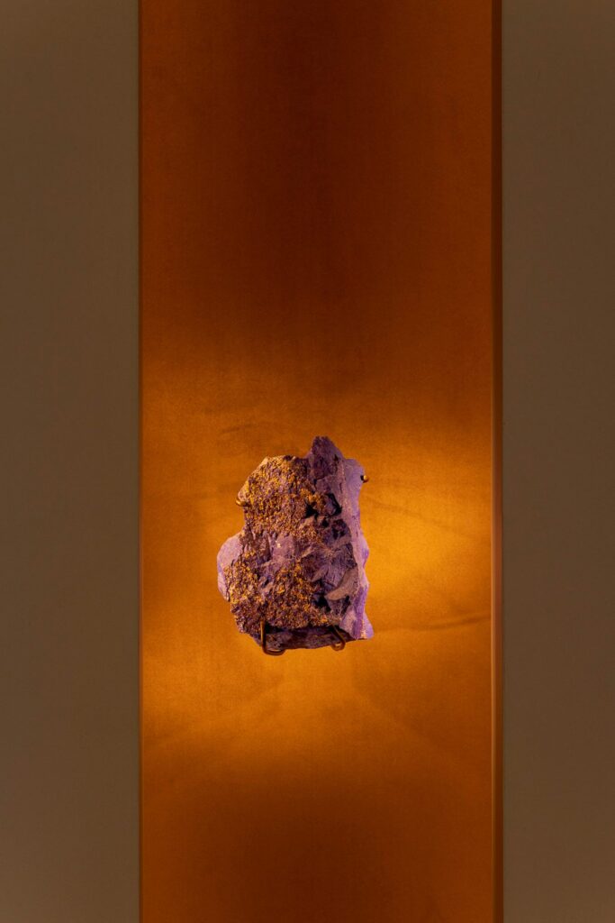 To avoid a sterile, plastic look, pieces of natural shell were integrated into the orange-hued panels, creating a texture that mimics the organic irregularity of natural stone while allowing for precise, futuristic shaping.