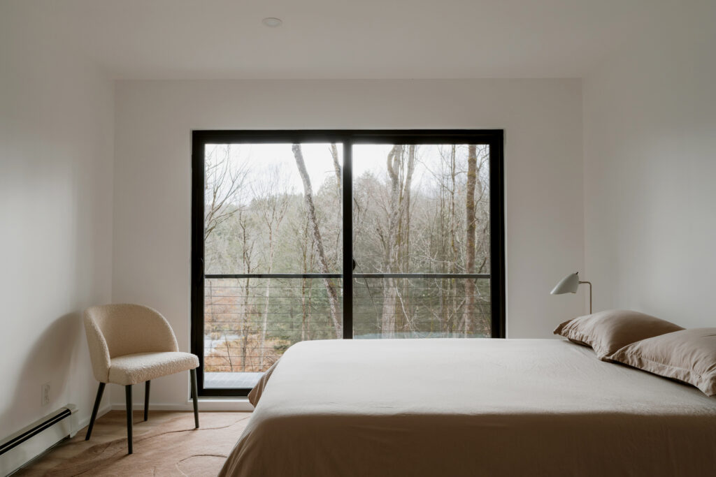 Nestled discreetly on a lush 3-acre parcel of forest, the home doesn’t just sit on the land; it engages with it. Situated on a soft slope within the forested mountains, the design takes its cues from the surrounding rural agrarian vernacular of the Catskills.