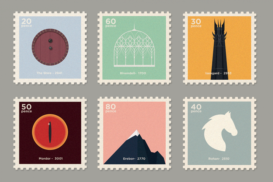 Wonderfully conceived and minimalist in design, these first rate designs celebrate some of the most iconic structures from the Lord of the Rings realms and transplants them into cool looking stamps that, were we of a stamp collecting persuasion, we’d definitely be wanting to add them to our collection.