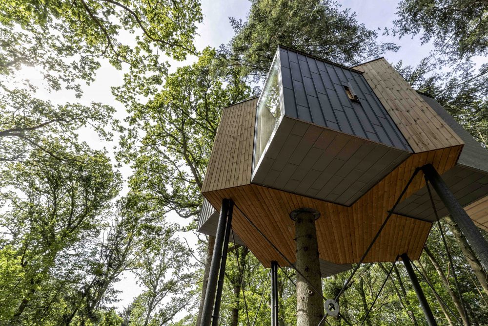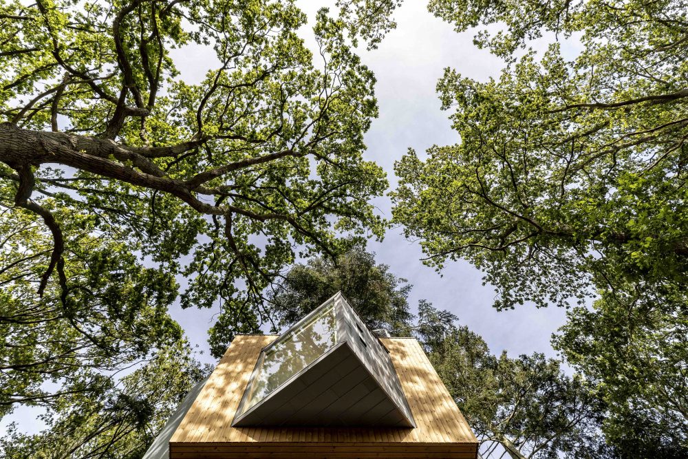 The Løvtag Cabins in Denmark are designed by architect, Sigurd Larsen, and the finished cabin has a so-called “ground floor” with a double bed, a double sofa-bed, kitchen, toilet and shower as well as a rooftop terrace under the canopy of trees, some eight metre above the ground which give amazing views out into the forest below. The cabin is built around a large, old pine tree that goes straight through the cabin’s floor and roof and provides a compelling visual impact to your stay.