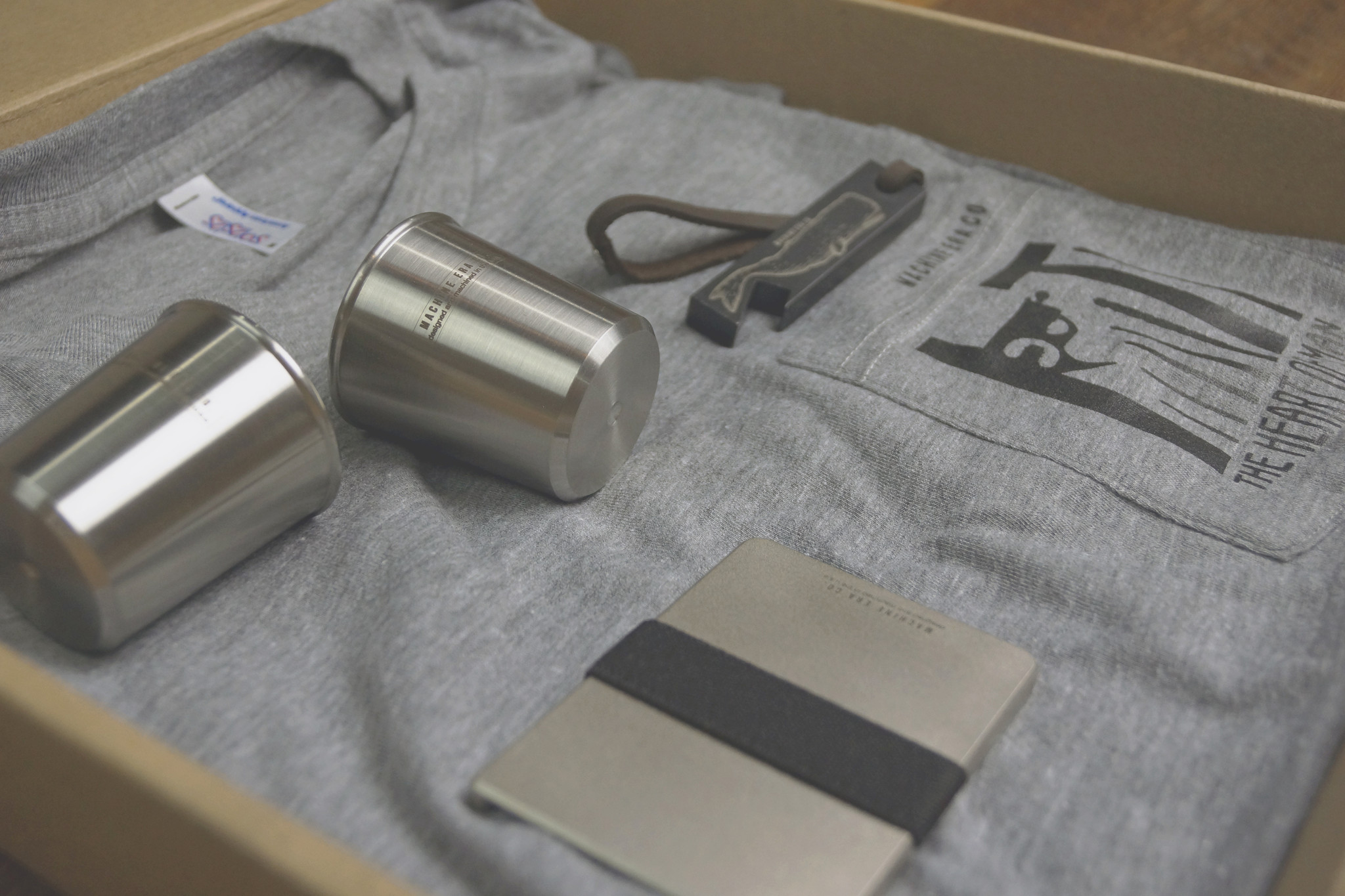 If you know a chap who is difficult to buy for this festive period or, indeed, you want to treat yourself, you certainly won’t go too far wrong with one of these fantastically curated gift boxes from Machine Era Co. In each set you’ll find some of their key pieces including a wallet (in their gun-metal colour way), a Machine Era Co T-shirt, a pair of their brilliant heavy shot glasses and last but by no means least, one of their supremely popular whale emblazoned Godwin bottle openers. Check out a few more shots below: