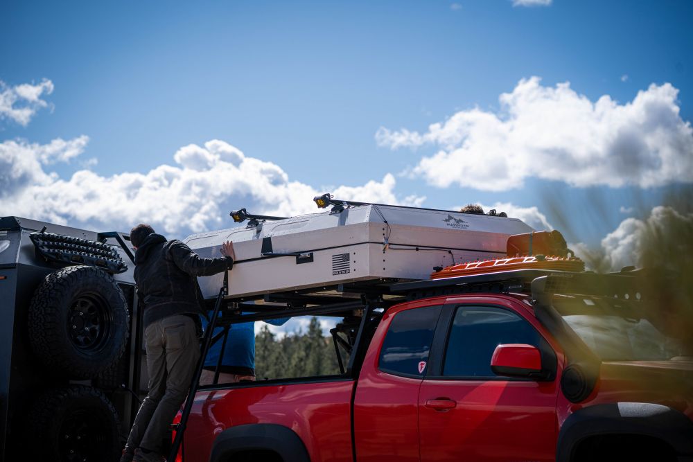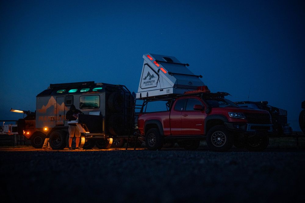 According to Mammoth Overland President Scott Taylor, the SKL was born from a simple yet brilliant question: “What if a trailer and rooftop tent had a baby?” The SKL takes the most beloved features of their wildly successful HV, ELE, TL, and WLY trailers and elevates them – literally – to the roof of your rig. More than just a place to sleep, the SKL is essentially a portable power station you can comfortably bed down in.
