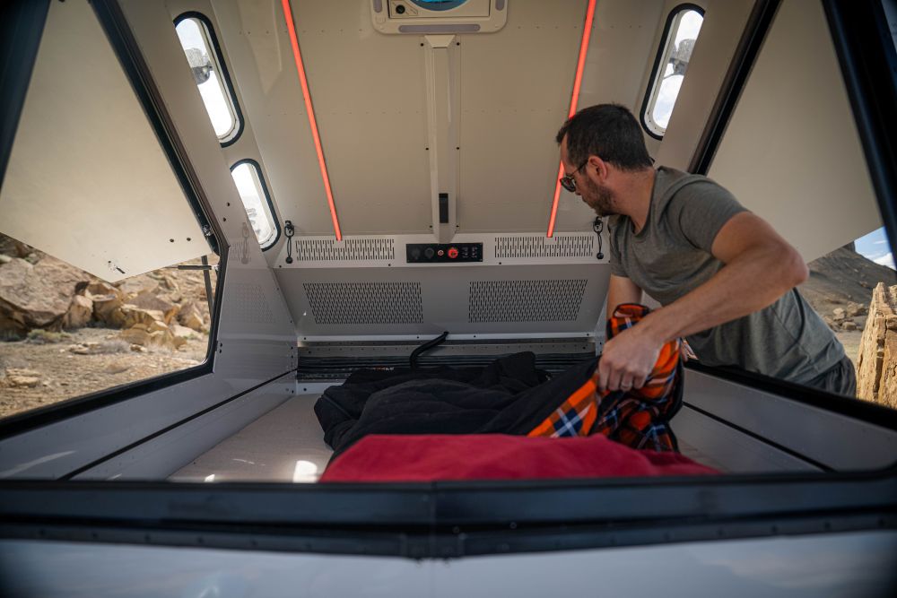 But the innovation doesn’t stop at its bulletproof-esque construction. The SKL packs a serious punch when it comes to power, featuring a substantial 208-Amp-hour battery pack integrated right into its roof structure, thanks to two solid-state Renogy 104-Amp-hour lithium-ion batteries. Pre-wired for solar panels that can be easily attached to its hefty 500-pound capacity roof rack, the SKL allows you to charge those onboard batteries with solar or shore power, making it a true off-grid powerhouse capable of running both interior and exterior electronics.
