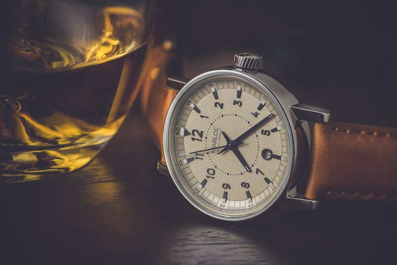 Understated and refined, the White Dial Haskell Watch from Marloe has a dial that is reminiscent of carved chalk and it boasts a lightly textured surface in the centre, with a subtle brushed scallop ring. You’ll find it hard not to be impressed with the black printed train-track markings around the scallop lead inwards to the polished applied blocks and Arabic numerals. The central lighter grey dot track aids quick time reference and the specifications of the white dial Haskell are just as excellent as the others in the range including the ETA 2804-2 manual mechanical movement, hacking function and quickset date complication. (£995)