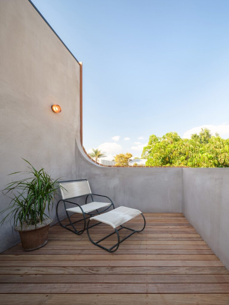 Down below, strategic setbacks and carved-out openings perfectly orient the internal living spaces toward the newly expanded backyard, adding a rich social dimension to the property.