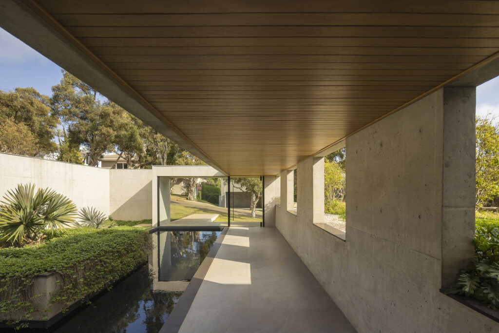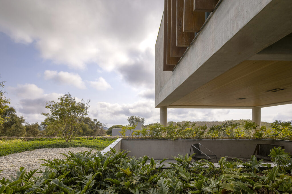 Aesthetically, the material palette of this build is a moody, brutalist dream. Exposed concrete serves as the absolute central element of the home’s materiality. The architects selected this raw, industrial finish not only for its powerful plastic expressiveness but also for its uncompromising durability against the vibrant, staining red earth native to the region.